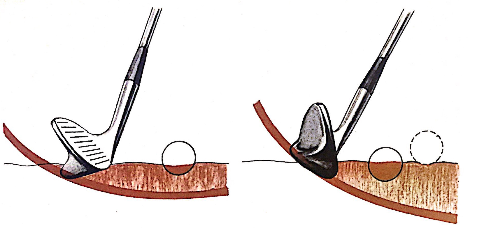 Si la arena es gruesa, o está húmeda, mayor tendencia tendrá el palo a hundirse y el corte será más profundo, obligando a un SWING más firme.
